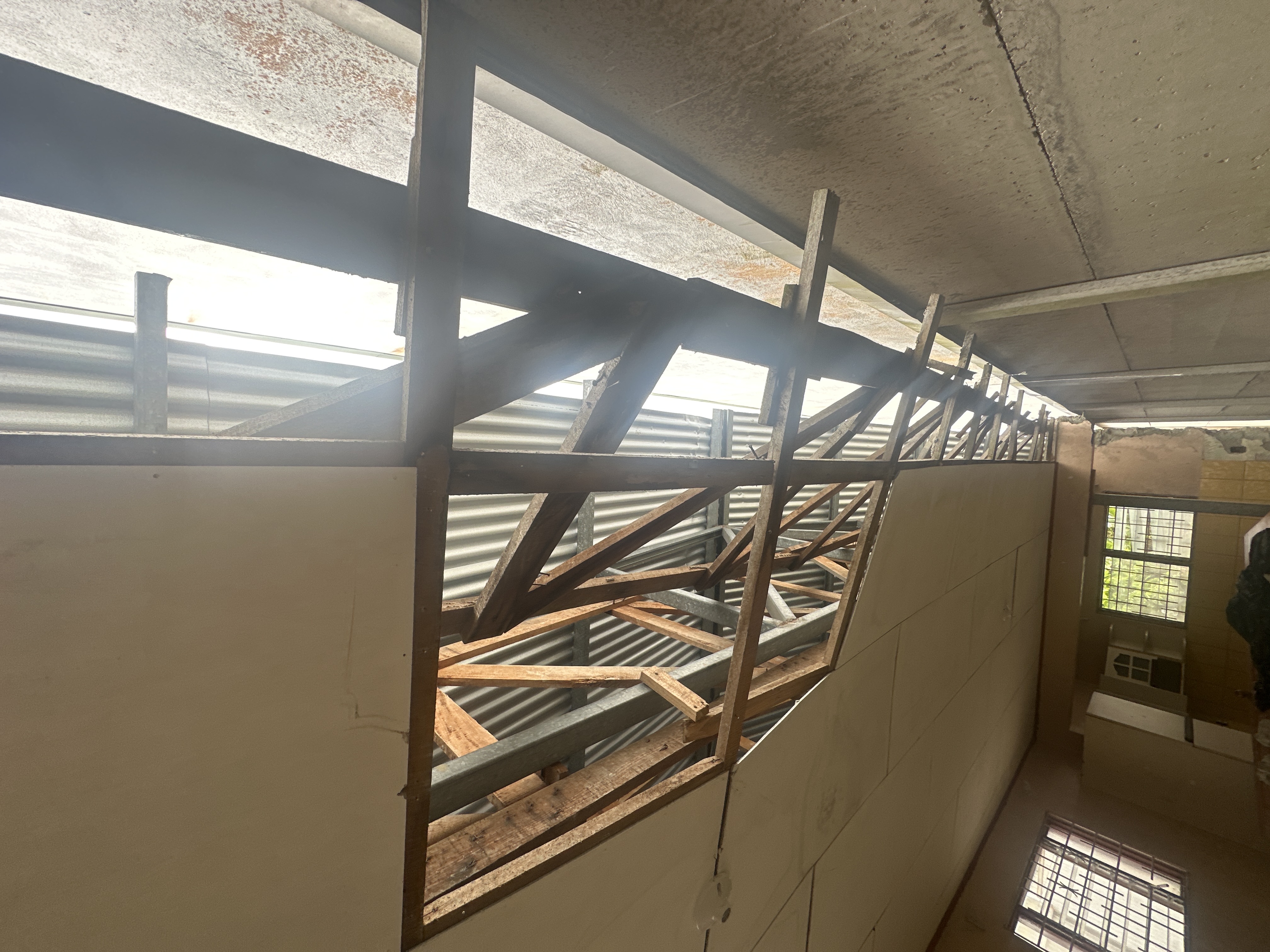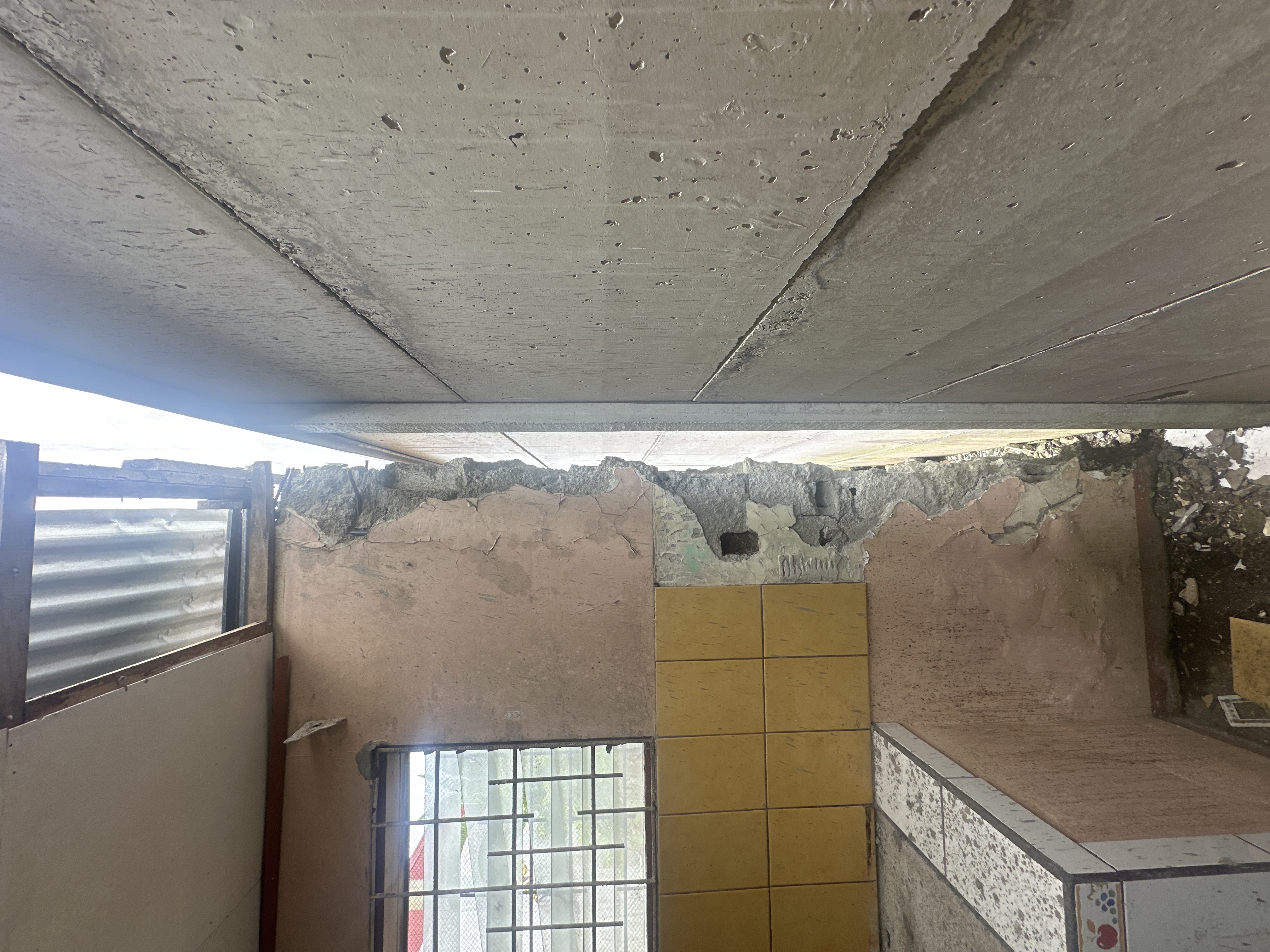 Se observa cielo, raso, comprometido, sanidad estructural, totalmente comprometida, recomendación profesional es demoler
